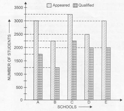 1) What is the ratio of the number of students qualified in the scholarship examination from School A and the number of students qualified in the examination from School B? A) 8:3 B) 5:7 C) 7 :3 D) 7:5 E) None of these Answer: Option DExplanation:(Number of students qualified from A): (Number of students qualified from B) = $\frac{1750}{1250}$ = $\frac{7}{5}$ = 7:5