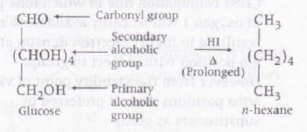 1) Glucose on prolonged heating with HI gives A) n-hexane B) 1-hexane C) Hexanoic acid D) 6-iodohexanal Answer: Option AExplanation:HI is a strong reducing agent.It reduces both primary and secondary alcoholic groups of glucose along with the carbonyl group to produce n-hexane as