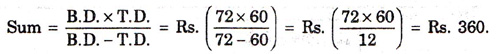 3.The banker's discount of a certain sum of money is Rs. 72 and the true discount on the same sum for the same time is Rs. 60. The sum due is : A) Rs. 360 B) Rs. 432 C) Rs. 540 D) Rs.1080 View Answer Report DiscussAnswer: Option AExplanation: