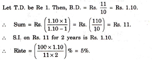 2.The banker's discount on a certain sum due 2 years hence is 11/10 of the true discount.The rate percent is : A) 11% B) 10% C) 5% D) 5.5% View Answer Report DiscussAnswer: Option CExplanation:
