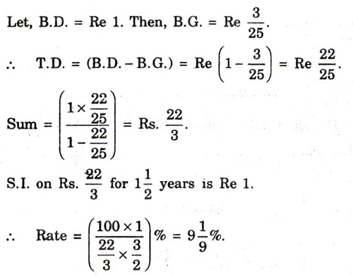 1.The banker's gain on a certain sum due 1(1/2) years hence is 3/25 of the banker's discount.The rate percent is : A) 5(1/5)% B) 9(1/9)% C) 8(1/8)% D) 6(1/6)% View Answer Report DiscussAnswer: Option BExplanation: