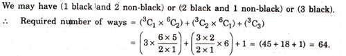 4.A box contains 2 white balls, 3 black balls and 4 red balls. In how many ways^can 3 balls be drawn from the box, if at least one black ball is to be included in the draw ? A) 32 B) 48 C) 64 D) 96 E) None of these View Answer Report DiscussAnswer: Option CExplanation: