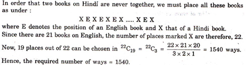2.In how many ways can 21 books on English and 19 books on Hindi be placed in a row on a shelf so that two books on Hindi may not be together ? A) 3990 B) 1540 C) 1995 D) 3672 E) None of these View Answer Report DiscussAnswer: Option BExplanation: