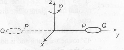 (iii) Magnitude of the velocity of any particle is $v=r \omega$ where r is the perpendicular distance of that particle from the actual axis of rotation (z-axis)