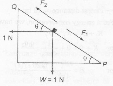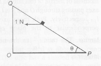 A small block of mass of 0.1 kg lies on a fixed inclined plane PQ which makes an angle $\theta$ with the horizontal. A horizontal force of 1 N acts on the block through its centre of mass as shown in the figure. The block remains  stationary if (take g=10m/s2)