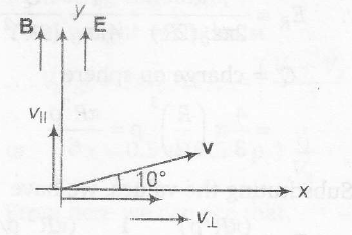 Consider the motion of a  positive  point charge in a region where there are simultaneous uniform electric and magnetic fields $E= E_{0}\widehat{j}$ and $B=B_{0}\widehat{j}$. At time t=0 , this charge has velocity v in the x-y plane, making an angle $\theta$. $\theta$  with the x-axis, which of the following option(s)  is (are) correct for time t>0?