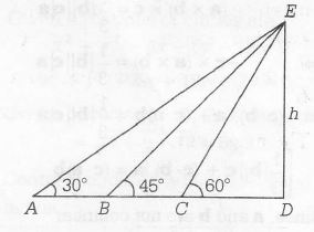 If the angles of elevation of the top of a tower from three  collinear points A, B and C on a line leading  to the foot of the tower are 30° , 45° and 60° respectively , then the ratio AB:BC is