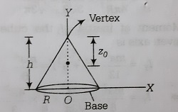 Distance of centre of mass of a solid uniform cone from its vertex is z0.If the radius of its base is R and its height is h, then zis equal to