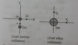 A particle of mass m moving in the x-direction with speed 2v is hit by another particle of mass 2m moving in the y-direction with speed v .If the collosion is perfectly inelastic the percentage loss in the eneergy during the collosion is close to